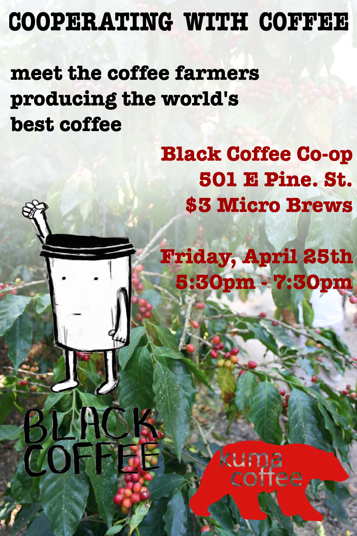 This Friday, 4/25 will be a rare opportunity to meet the very farmers who grow some of the Kuma-roasted coffee served at Black Coffee. These are individuals representing heirloom farms & cooperatives growing some of the highest quality coffee in the world.